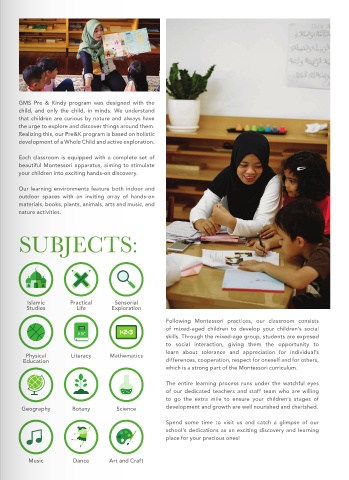 GMS Pre & Kindy program was designed with the MS Pre & Kindy program was designed with the